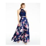 CITY STUDIO $129 MSRP Womens Maxi Skirt Navy Evening Floral Juniors 15 |