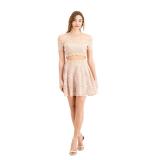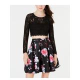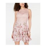 B DARLIN $69 MSRP Womens Fit + Flare Short Dress Pink Zippered Lace Long Sleeve Illusion Neckline Party Floral Juniors 11\12 |