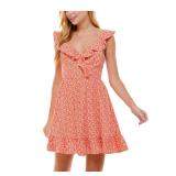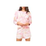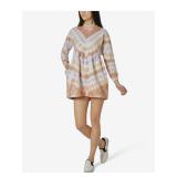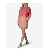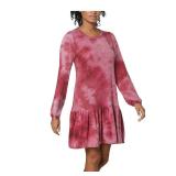 NO COMMENT $49 MSRP Womens Shift Short Dress Coral Long Sleeve Crew Neck Tie Dye Juniors L |