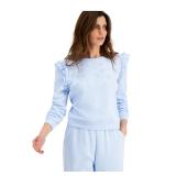 INC $69.50 MSRP Womens Light Blue Embellished Ruffled Sweatshirt S |