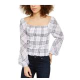 INC $69.50 MSRP Womens White Ruched Plaid Long Sleeve Square Neck Top XL |