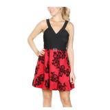 CRYSTAL DOLLS $59 MSRP Womens Fit + Flare Short Dress Black Sleeveless V Neck Party Floral Juniors 11 |