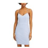 EMERALD SUNDAE $69 MSRP Womens Body Con Above The Knee Dress Red Zippered Lined Spaghetti Strap V Neck Party Bra Cups Side Slit Juniors XXS |