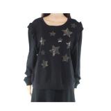 INC $69.50 MSRP Womens Black Ruffled Embellished Stars Printed Sweatshirt Size: XL |