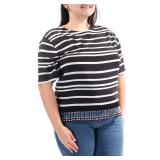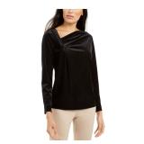MICHAEL MICHAEL KORS $110 MSRP Womens Black Metallic O-ring Detail Paisley Short Sleeve Surplice Neckline Wrap Top Plus 1X |