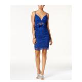 BCX DRESS $129 MSRP Womens Fit + Flare Short Dress Blue Zippered Rhinestone Sleeveless Sweetheart Neckline Party Floral Padded Boning Sheer Lined Juniors 11 |