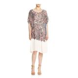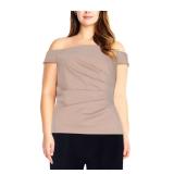 MICHAEL MICHAEL KORS $88 MSRP Womens Beige Cold Shoulder Printed Long Sleeve Asymmetrical Neckline Top Plus 2X |
