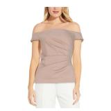 INC $59.50 MSRP Womens Beige Embellished Cold Shoulder Tie Shoulders Lined Printed 3/4 Sleeve Scoop Neck Top XS |