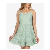 SAY YES TO THE PROM $139 MSRP Womens Fit + Flare Short Dress Green Zippered Rhinestone Spaghetti Strap V Neck Formal Floral Lace Up Tulle Padded Juniors 5\6 |