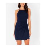 MICHAEL MICHAEL KORS $88 MSRP Womens Blue Open Back Cut Out Chain Collar Sleeveless Halter Top S |