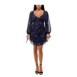 B DARLIN $49 MSRP Womens Fit + Flare Short Dress Navy Glitter Zippered Long Sleeve V Neck Party Solid Juniors 1\2 |