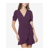 KINGSTON GREY $39 MSRP Womens Short Dress Purple Long Sleeve Crew Neck Juniors S |