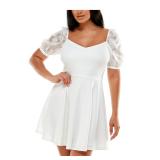 CITY STUDIO $49 MSRP Womens Fit + Flare Short Dress Coral Zippered Lined Pouf Sleeve Keyhole Solid Open Tie Back Juniors 7 |