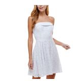 BCX DRESS $129 MSRP Womens Fit + Flare Short Dress Blue Zippered Rhinestone Sleeveless Sweetheart Neckline Party Floral Padded Boning Sheer Lined Juniors 0 |