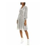 KINGSTON GREY $39 MSRP Womens Shirt Dress Mini Gray Long Sleeve Crew Neck Juniors M |