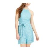 BCX DRESS $129 MSRP Womens Fit + Flare Short Dress Blue Zippered Rhinestone Sleeveless Sweetheart Neckline Party Floral Padded Boning Sheer Lined Juniors 15 |