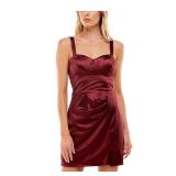 BCX DRESS $59 MSRP Womens Faux Wrap Short Dress Burgundy Zippered Pleated Spaghetti Strap Cowl Neck Cocktail Solid Juniors 3 |