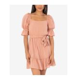 KINGSTON GREY $39 MSRP Womens Fit + Flare Short Dress Pink Pleated Short Sleeve Collared Juniors S |