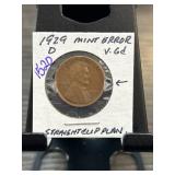 1929 Lincoln Wheat Cent, EF/AU Condition |