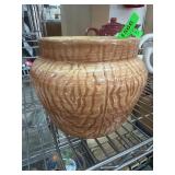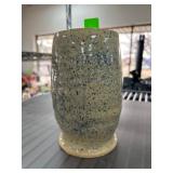 Glazed Ceramic Speckled Vase with Blue Accents |