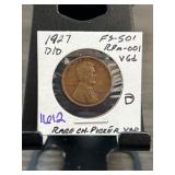 1927 Lincoln Wheat Penny, EF40 Grade |