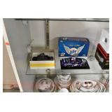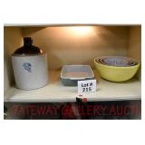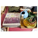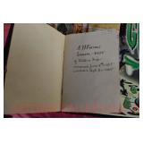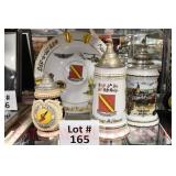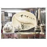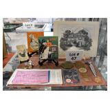 Showcase Catalog 1 Westmoreland, Glass, MCM Ceramics, etc.: studio pottery blue glazed vase; (4) MCM ceramic Albert Pick Co. ashtrays; stoneware creamer w/blue band; RS Germany green star vase; Royal Worcester egg coddler; Westmoreland candy holder, covered wedding box candy dish; pottery vase; Shenango pottery black transferware American Legion plate 2 Brass Ashtrays: trench art 50 cal. shell 1942, engraved; (4) matching ashtrays 3 Bookends: world globes on wood base 4 Vintage Cosmetics Set: Chambly Gardenia beauty lotion, cologne, pine bath oil, skin freshener, foundation cream, cold cream, skin cream, powder, perfume, brilliantine, manicure set (original box for the set, all items have been used) 5 Vintage Holiday Decorations: easter chick with accordion crepe paper; (2) bunny & eggs in basket accordion crepe paper (1 is as is); christmas tree topper; (2) folding rabbits (paper) 6 Paperweights, Hummel, Figurines: (2) signed clear bird paperweights; miliflora bird paperweight; Murano Ice T fish; advertising Bed pan ashtray; carved stone goose (signed); wood carved owl; school boy hummel; metal soldier on onyx base; postal scale 7 Assorted Lot: Longaberger cracker basket 1993; carved wood Molinillo whisk; drafting set; cribbage game wood box; ocarina 8 Pennsbury Pottery Set: pitcher, (4) mugs - rooster pattern 9 (2) Antique Photo Albums: CDVs and tin types - (1) album full with most of photos identified, (1) album 3/4 full with some photos identified & roughness on some interior pages 10 Camera & Binoculars: Pentax super program camera; Philips flash; pair empire binoculars 8x40; telephoto lens Pentax mount 500 mm with orig. box (box rough) 11 Vintage Toys: cast iron acme dog; cast iron cocker spaniel; circus hand held schylling pinball game; viewmaster model E with light attachment Sawyer mfg.; Russian nest of dolls Nutcracker; donald duck pencil sharpener walt disney (faded) 12 (2) Antique Photo Albums: CDVs and tin types - (1) album full with most of photos identified, some roughness on inside; (1) album 3/4 full, some of the photos are identified, the inside is rough, the spine is loose 13 Vintage Cameras: Brownie Holiday camera; #2A folding autographic brownie with box; Waldorf mini cam candid camera w/box; (3) boxes of Kodak film with film 14 Military: WWII army hat (some roughness on inside); map on silk 1944; photos WWII; foreign currency; copy of Japanese surrender; related ephemera; wooded bomb replica 15 Advertising: Squibb toilet lanolin; gauze box; adhesive; first aid kit (empty); alka seltzer tube bottle; nasal congestion; mercurochrome; petroleum jelly; moth destroyer; Wisconsin cheese tin; ice cream scoop Gilcrest #31 16 (2) Vintage Beaded Purses: blue beaded with fringe, metal clasp & wrist chain; amber/copper beaded with fringe, metal clasp & wrist chain 17 Bakelite Handle Utensils: (7) knives; (7) forks; (2) spoons; cheese knife; grape fruit knife; steak knife; pickle fork 18 German Artillery Shell: marked Polte Magdeburg Nov 1911, measures 8.5" dia x 9.25" tall HEAVY 19 Artillery Shell Bookends: painted, metal HEAVY 20 WWII Navy Waves Militaria: scrapbook, photo album, baby book, High School diploma, school of nursing booklets, nursing photos, waves patches, hat band, waves overseas cap, service photos, ID photos, civilian photos, naval photos, navy postcards, letters of recommendation to join waves, waves pamphlets & booklets, army/navy game ticket stub, souvenir photos 21 Heidelberg Souvenirs: plate; musical stein w/lid; (6) glass cordials with green stems; goblet 22 Jadeite, Pyrex, Skewers, Glass: set of (8) kabob skewers different weapons, brass; (2) fire king jadeite mugs; Pyrex 2-qt. baking dish, snowflake pattern, no lid; frosted glass creamer w/brass handle; crystal clock 23 Studio Pottery & Figurine: musical hummingbird figurine, plays "wind beneath my wings"; studio pottery vase, approx. 11 1/4" tall 24 Bering Sea Originals & Other China: Bering Sea Originals - large ashtray, lighter, tall vase (hand painted, made in Alaska); Robert Mayokok cup & saucer, salt & pepper shakers; footed tray, w/totem decoration, Arumpus Room Original, Japan 25 Camera, Lighter, Knives etc.: Kodak brownie model D camera; Zippo lighter w/box; carved stone owl; (2) pocket knives; advertising letter opener 26 Novelty China: (2) Japan egg cups; deer teapot & covered sugar; dog salt & pepper shakers 27 Heidelberg Souvenirs: (2) small steins w/pewter lids; glass boot; (3) steins; spoon 28 Figurines: (2) Hummels, chimney sweep, (1) is miniature; pair of Japan penguins; man w/donkey, signed 29 Viking & Fenton: Viking owl fairy lamp; Fenton cat, hand painted 30 Luncheon Sets: all Germany, one saucer is missing 31 Windstone Editions Fantasy Figurine: Ki-Rin baby, by Melody Pena, approx. 3" tall, marked Pena, '92 32 Teacups & Saucers: Noritake; English, etc. 33 Novelty Souvenir Salt & Pepper Shakers: roosters; walrus; Alaska; moose; steins; teapots; etc. 34 (2) Jewelry Boxes: small box w/Asian motif, mother of pearl inlay, turtle clasp; large box w/divided insert 35 Costume Jewelry: necklaces; earrings; pins; ring; bookmark; bracelet; belt buckle 36 Royal Albert & Royal Doulton Figurines: Royal Doulton pretty ladies Christmas day 2008, w/original box; Royal Albert Margaret; Royal Albert Helen 37 (8) Pcs. Blue Glass: (2) vases; covered compote; blue opalescent footed dish w/fluted edge; covered candy; double handled sugar; footed rose bowl; votive 38 Hall Wildfire China: salad serving bowl, discoloration on inside; aladdin teapot w/lid & infuser; coffee pot w/lid; pitcher 39 Butter Churn, Mold, Paddle: glass butter churn, 4-qt., most of label is gone; wooden butter press, wheat pattern; wooden butter paddle 40 Stoneware: pitcher, brown glaze; small crock; tobacco jar, no lid; Henn spongeware crock w/wooden lid 41 Store Jar: round, clear glass, metal lid 42 Ad Cards & Ephemera: Arm & Hammer useful birds of America ad cards (9); Singer Sewing Machine american song birds postcard ads (16); Nat