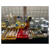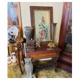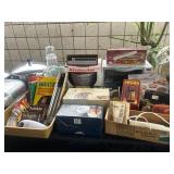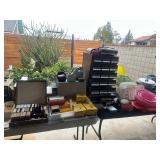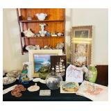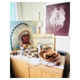 Odekirk Oddities Is in Riverside with a very eclectic mix of items in a packed house. Several very fine Navajo rugs, assorted sterling flatware for use or for scrap. Kachina dolls, several silver jewelry pieces, and a fantastic petite Concho belt set with turquoise. Nice mid century and antique furniture. A number of Papago tribal baskets, including a very fine bird effigy basket. Carved Black Forest shelf, smoking cabinet, 3 China Or curio cabinets, tons of black and white photos as well as color travel slides, Rocking chair and several recliners. Irish Belleek China, collection of small glass shoes, including several uranium glass ones by Fenton and Boyd. Sterling candle sticks, Belgian cast iron enamel cookware, Pyrex and Corning dishes. Many hand painted cups and saucers as well as antique serving pieces. Kitchen items and utensils, silver plated pieces, porcelain birds, books and vinyl records, vintage woman's clothing as well as two mink stoles. Antique 18K wedding band. Framed and unframed Native American artwork - including a sand painting. And much more! |