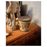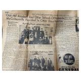 Pie safe, wardrobe, china cabinet, kitchen cabinet, jewelry armoire, treadle sewing machine base, coffee table, trunk, dropside table, chairs, dressers, cabinets, crocks & crock jug, local advertising & books, Dayton HS letter, pitchers & bowls, marbles, toys, dolls, copper boiler, stamps, oil lamps, Snowflake Freezer, Peanut butter tins, churns, postcards, mantel clock, hen on nest, Little Red Riding Hood candy pails, sadd irons, parlor lamps, iron pot, zinc lid, lunchbox, powder dish, clocks ,Tiger Bread pin, quilts & comforters, scrapbooks, photo albums, Ken Shuler print, pictures, costume jewelry, Christmas, ceramc Christmas trees, baskets, zin lids, deer horns, binoculars, cameras, wood bucket, stainless milk bucket, Guardian, Tupperware, bottles, glassware, blue jars, apple cookie jar (crack), Barbies, lard press, cream can, cow bell, hay hooks.