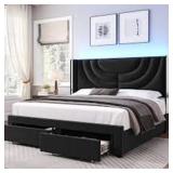 The outstanding appearance makes this 2-drawer storage bed high-end. The classic wingback headboard is paired with velvet fabric for a sleek, skin-friendly contemporary upholstered bed frame. Elegant arcuated shapes paired with simple tones are easy to integrate into your new housewarming home! The colorful LED bed frame lights up your room at night. Upgraded wall washers bring a better atmosphere. 12 high-quality wood slats and additional supporting legs ensure a overall stable structure which can evenly loaded and provides great support for your mattress! 【Safety Reminder: For your safety and to maintain optimal device performance, always unplug the charging cable from the USB port when it is not in use. 】
