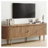 Transform your space with this mid-century modern TV stand, featuring a sleek oval design and tapered solid wood legs. The sliding tambour doors offer easy access and keep your items organized. With ample storage for electronics and essentials, it helps maintain a clutter-free home. Perfect for any room, it combines style and functionality seamlessly.