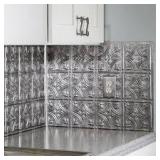 Fasade 18.25 in. x 24.25 in. Crosshatch Silver Traditional Style # 4 PVC Decorative Backsplash Panel