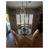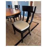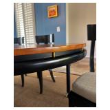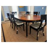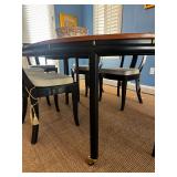 - Henredon Mid-Century style dining table on casters with black lacquer dining chairs