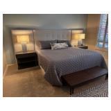 - Bedroom sets including beds, linens, nightstands, lamps, side chairs, etc.