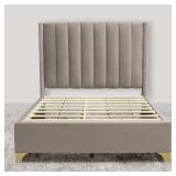 (39) ***2 BOXES*** Greaton, Suede Upholstered Bed Frame, Decorative Attractive Headboard, Long Lasting Durable, Includes 3 Color Legs to Choose Gold, Silver and Black, Full, Taupe