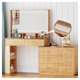 - Built-in Power Strip: Upgrade design! This makeup table equipped with a power strip that has 2 standard plug sockets ,1 USB ports and 1 T-C with a 4.9-foot power cord, convenient for the LED lights, hairdryer, curling iron, and charge your phone, tablet, or other electronics.