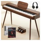 AKLOT 88-Key Weighted Keyboard Piano: Graded Hammer Action Digital Piano with Touchscreen, 128 Tones, Upright Electric Piano, Triple Pedal, Headphone, USB-MIDI, Beginner Lesson Book (AUR-LS01 Walnut)