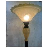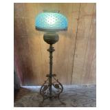 APPLIANCES* Beautiful Antique Iron Floor Lamp w/Blue Hobnail Shade, Microwave, 10 Assorted Table Lamps, Small Fan, Cage Fan, 2 Vacuum Cleaners, 2 Electric Griddles, 2 Electric Roasters,