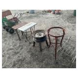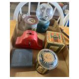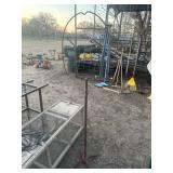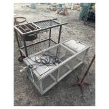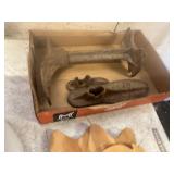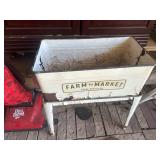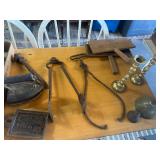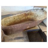 WOOD & METAL ANTIQUE COLLECTIBLES* Small Tin Baby Bathtub, Cast Iron Garden Frog, C/I Bunny Doorstop, Stainless Steel Hospital Cot/Stretcher, Stainless Steel Commercial Floor Shelves, Barn Lantern, Coleman Lanterns, Wood Egg Crate, Wood Cabbage Mandolin, Large Shortening Tins, Assorted Tins, 2 Cast Iron Pots, Bobby Flay C/I Bacon Pan, Sad Iron, Buck Saw, Primitive Wood Trunk, Fire Place Tools, Small Antique Doll Clothes Sad Iron, Wood Toll Caddy, and more!