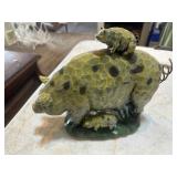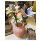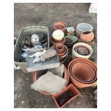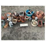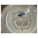 GLASS & POTTERY* Porfirio Salinas Bluebonnet Plate, 2 Gallon Churn Crock, Small Whiskey Crock, Grapette Clown Bank, Several Large Clay Vases, Numerous Clay Flowerpots, Garden Figurines, Glass Flowers, Limestone Border Rocks, Cement Edge Stones, Deco Rooster Plates, Western Cowboy Sculpture, Milk Glass Nesting Chicken, Arch Window, & More!