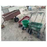 TOOLS* Nice Commercial RR Style Cart, 2 Two Wheel Dollys, Huskey Electric Pressure Washer, Portland Electric Chipper Shredder, Yard Machine Gas Push Mower, 2 Push Fertilizer Spreader, Garden Wagon (Needs Wheel), Tool Set in Case, 3 Plastic Toolboxes, Assorted Hand Tools, 6 Foot Fiberglass Ladder, Small Kitchen Ladder, Drills, Jig Saws, and More!