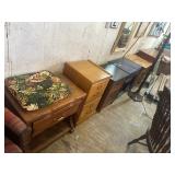 FURNITURE* Gibson Antique Oak Ice Box, Antique Secretary Desk, Gibson Antique Record Player, Large Antique Wardrobe, Slim Antique Wardrobe, Antique Chifforobe, Treadle Sewing Machine, Singer Iron Sewing Machine Table w/Glass Top, 3 Antique Dressers w/Mirrors, Pair of Maple High boy Chest of Drawers, Night Stands, Eastlake Settee, Antique Dinning Table w/2 Leaves & 4 Chairs, Breakfast Table and Chairs, 50’s Tin Hoosier Helper Cabinet, Sewing Table, Antique Round Parlor Table, Antique Rolltop Desk, Pair of Captain Chairs, Set of 4 Cane Bottom Chairs, Metal 3 Tier Metal Plant Stand, Child Purple Lifetime Picnic Table, Red Paint Wood Bench, Pair of Adirondack Chairs, Large Church Pew, Antique Oak Rocker, Wicker Rocker, Antique Brass Bed, Antique Rope Bed, Twin Bed, Quilt Stand, Shoe Rack, Small TV Stand, Stereo Console, Set of Vintage End Tables, Several End Table, Vintage Table, Bombay Coffee & End Table, Drop Leaf Coffee Table, Metal & Wood Sofa Table, Nice Torch Lamp, Microwave Stand, Wall Clocks, Oak Chair, Rustic Wood Chair, Wall Wine Rack, Small Bathroom Shelf, Wire Storage Shelf, Assorted Mirrors, Several Area Rugs and More!