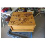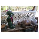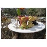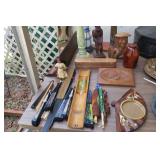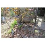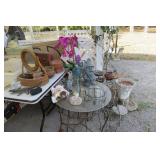 SALE IS BEING HELD ON SITE AND INCLUDES MANY GREAT ITEMS INCLUDING: ROSEVILLE-ROOKWOOD-MCCOY AND OTHER POTTERY including vases umbrella stand -pedestal- floor vases; JEWELRY INCLUDING SILVER AND COSTUME & TURQUOISE; 1957 SINGER FEATHERWEIGHT IN ITS CASE with accessories and instructions ; showcases;primitive kitchen;glassware; native pieces;yard decor and furniture;tools;yard statuary;greenhouse frame; kaboda yard tractor; schwinn 3 wheeler w/motor;motorcycle;lumber;purses; picnic table;pulleys; rope; axes; hatchets; hand carved fish - alien-indian-turtle; oil lamps; shells; rocks; shelves; welder; yard tools ; slabwood furniture; patio set; tree stand; greenhouse frane; hog trap; wheel barrel; MORE- STILL PULLING ITEMS OUT |