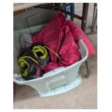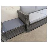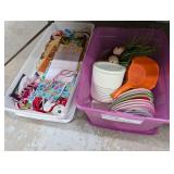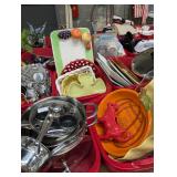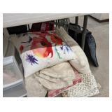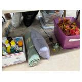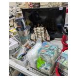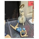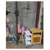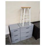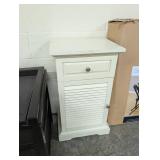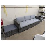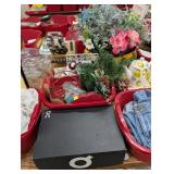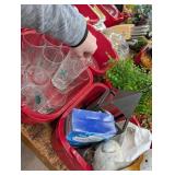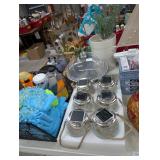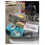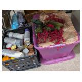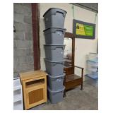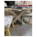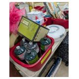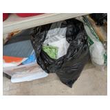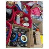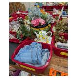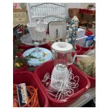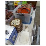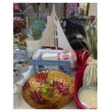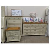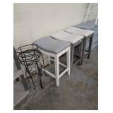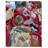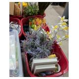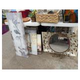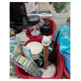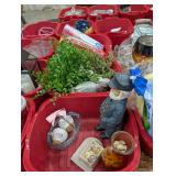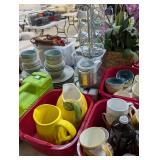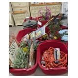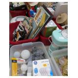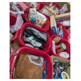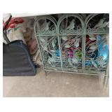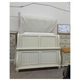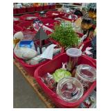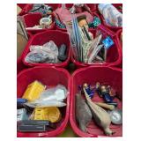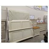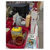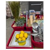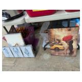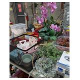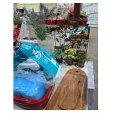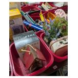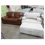 Furniture is beach and cottage style, leather loveseat and chair, oversized white plush chair, bar stools, outdoor seating set, twin bed set Table lots include more cameras, car parts, clothing, beach decor, flowers, china sets, garden decor, bins of tin signs, household and art.