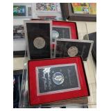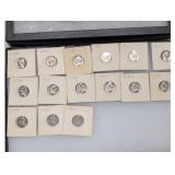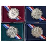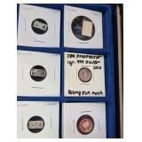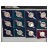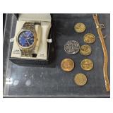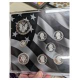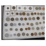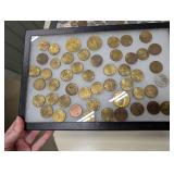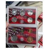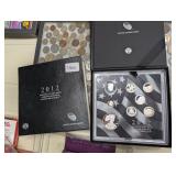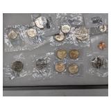 Coins include: Silver proof sets, Proof dollar coins, foreign coins, wheat pennies, 1 gram silver trinkets
