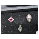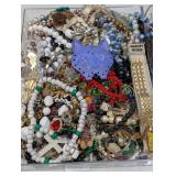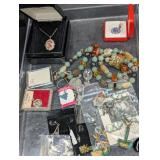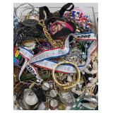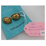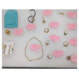 High Quality gold jewelry includes: 18k gold Tiffany & Co. Schlumberger lozenge earrings 18k gold Tiffany & Co. Paloma Picasso Lightning Bolt earrings 14k gold Potter Mellen ring 14k gold Chaumet Anneau dome ring 14k gold choker with 3 diamonds Other gold earrings, rings, jade and pearls, watch Sterling silver rings and jewelry Trays of costume jewelry