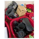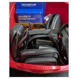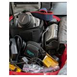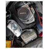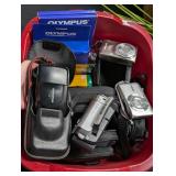 Bins of cameras, Olympus, Nikon Coolpix, Sony, Canon, some digital