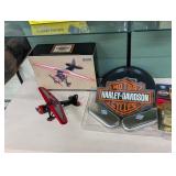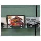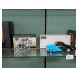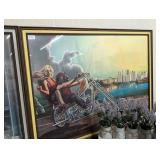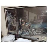 Another wall of Harley Davidson collectibles and art by David Mann, diecast cars, hot wheels