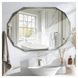 This accent mirror enhances your space with its playful shape and brilliant shine. Crafted from glass in an oval silhouette, it features angular corners and beveled edges that artfully catch and reflect light throughout the room. Support both vertical and horizontal mounting.