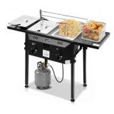 Deep Fryer Standing Stainless Steel Propane Cooker with Foldable Shelf, Fryer Pot, Baskets for Outdoor Camping Party - Black