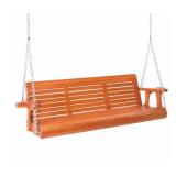 5 ft. Brown Wood Porch Swing with Cup Holder and Adjustable Chains, Pine Wood Support 880 lbs. Well Coated Surface
